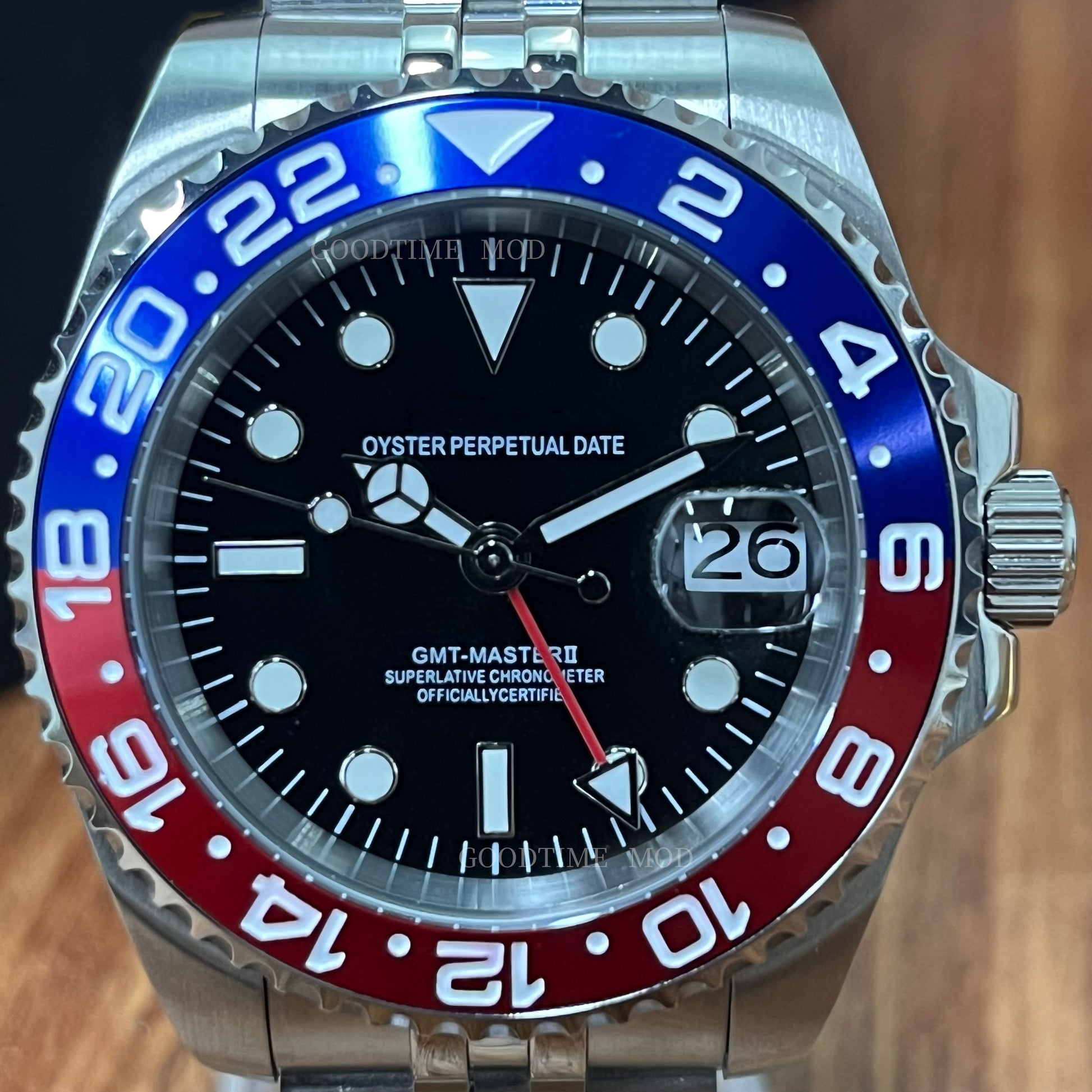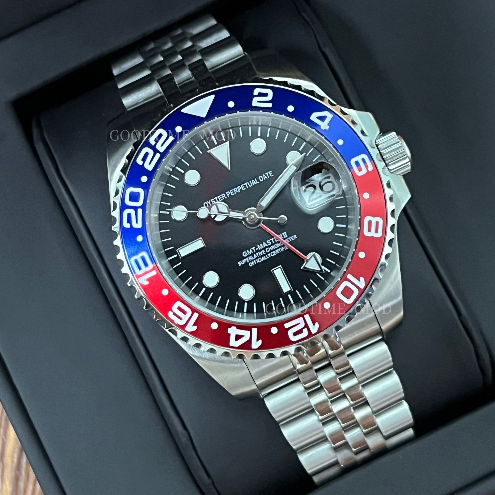 - 机身尺寸:蓝色和红色 GMT - 28.5 毫米